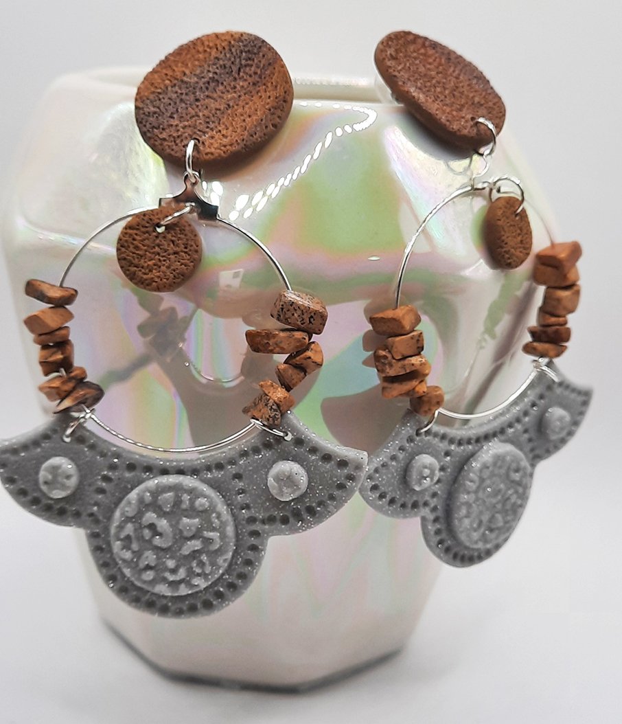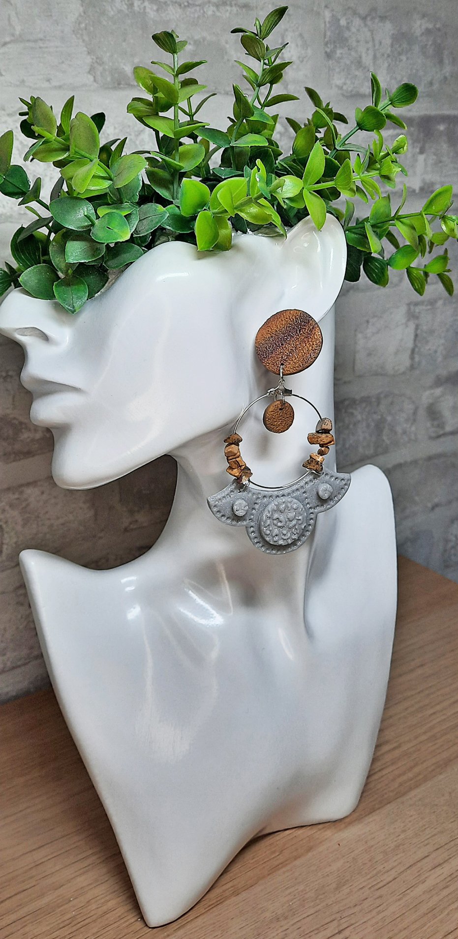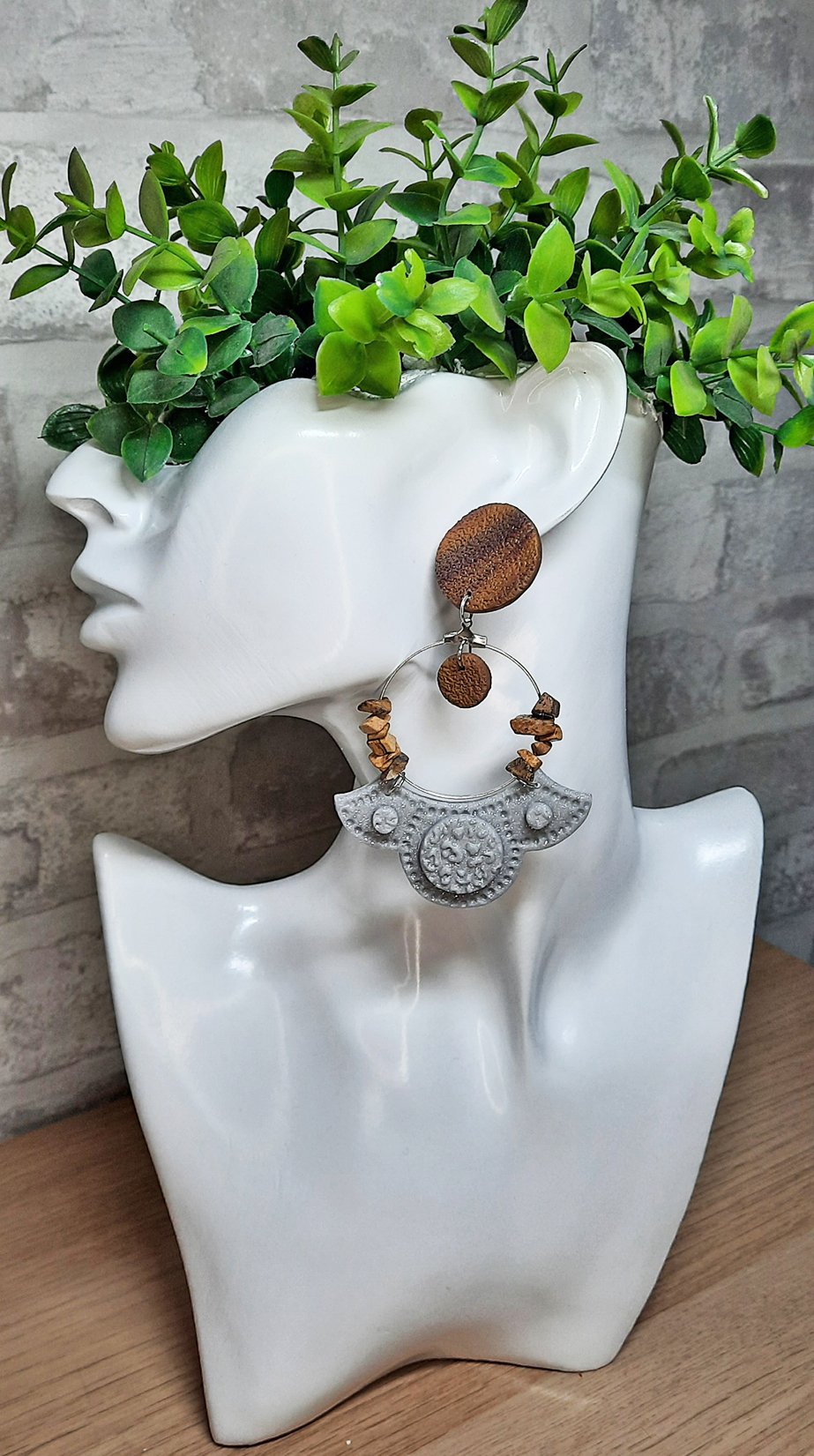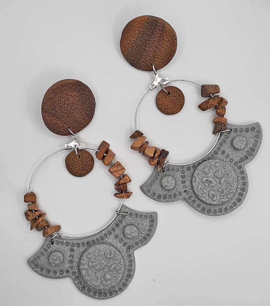 ■ Περιγραφή: Έθνικ statement σκουλαρίκια, με κούμπωμα σε όψη ξύλου και χάντρες στην ίδια απόχρωση