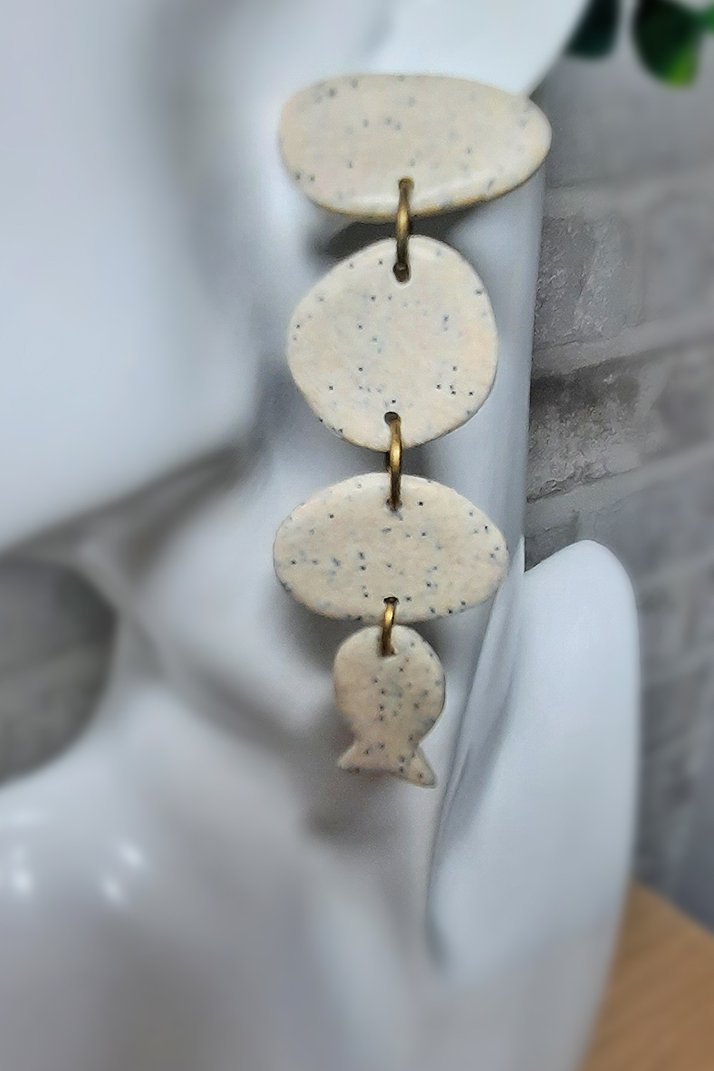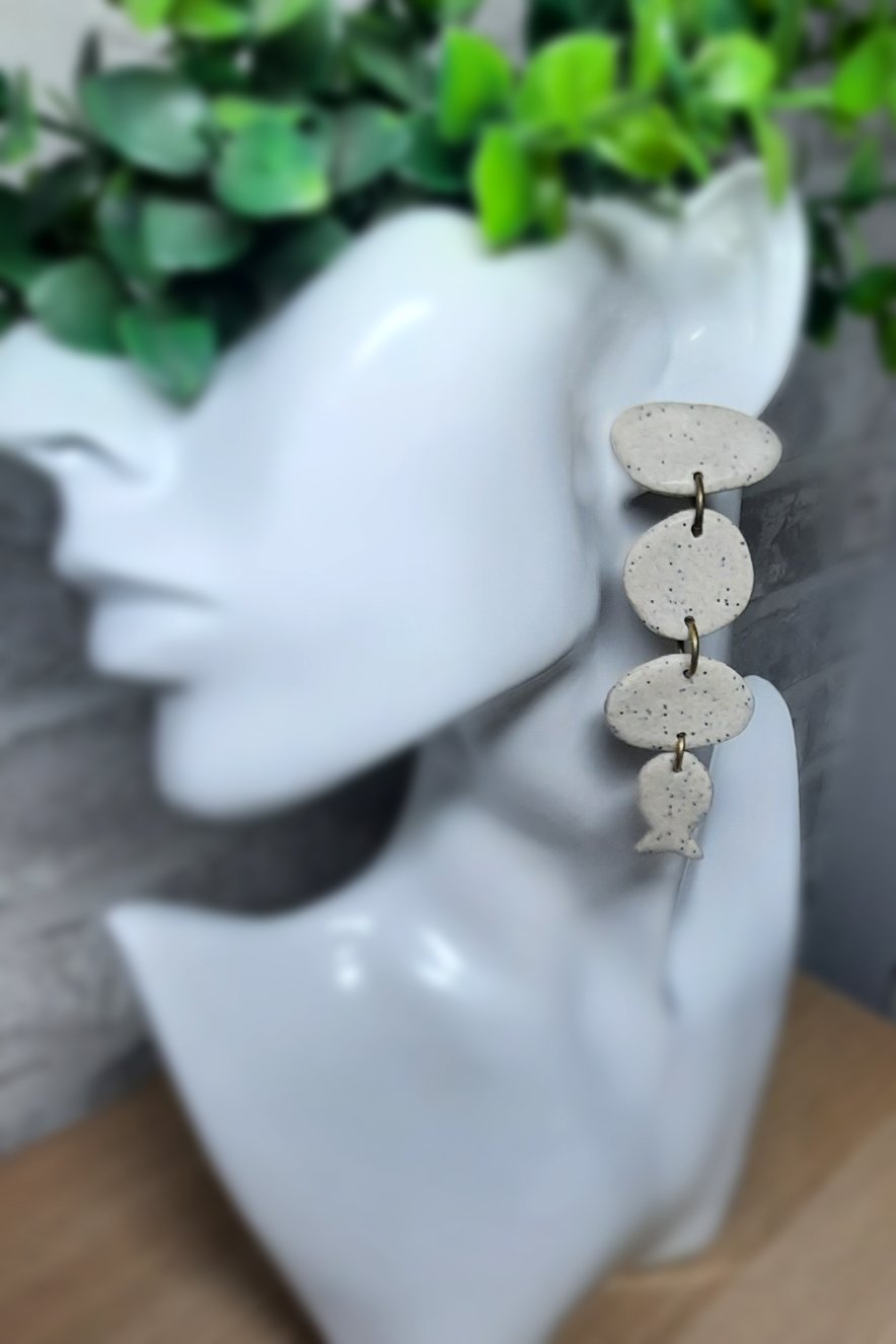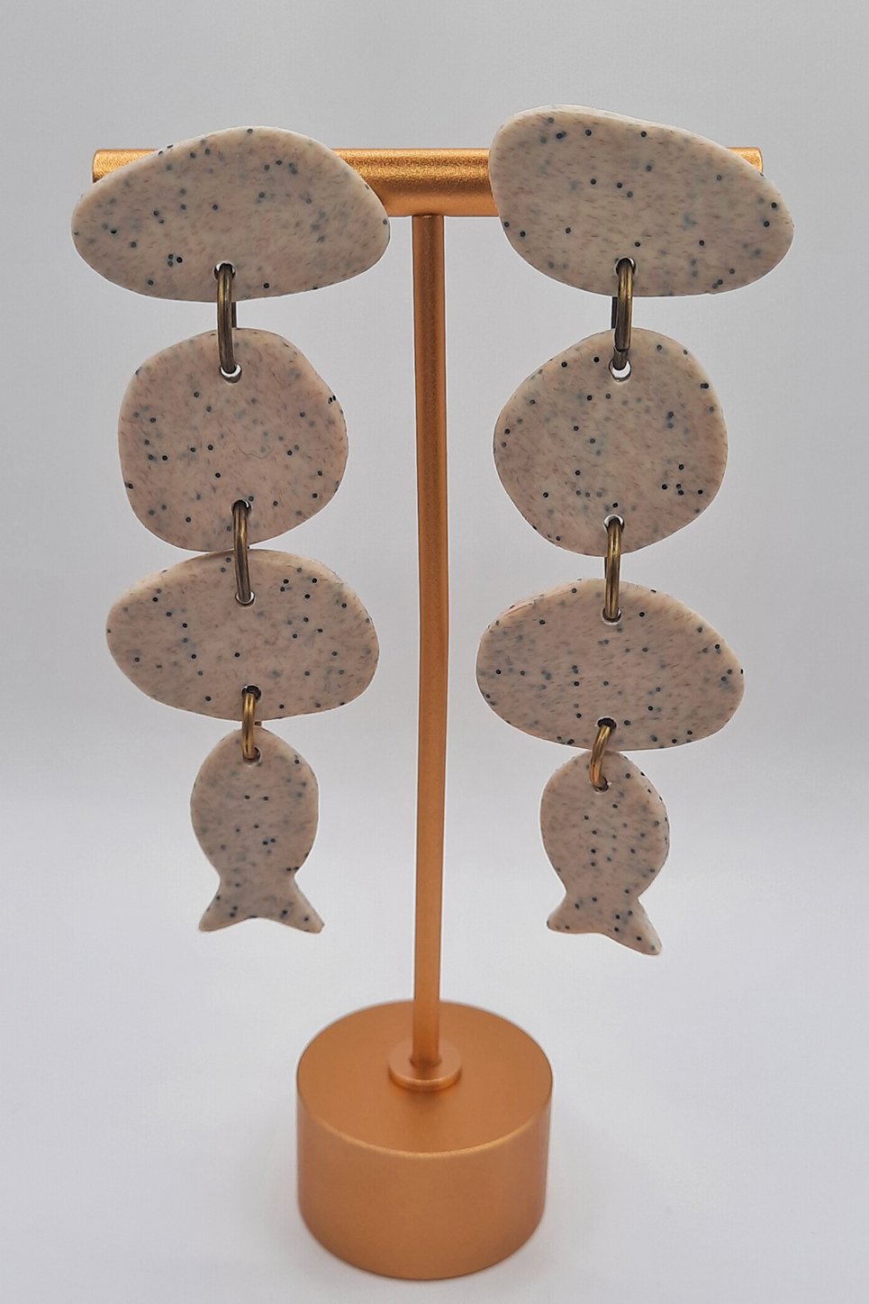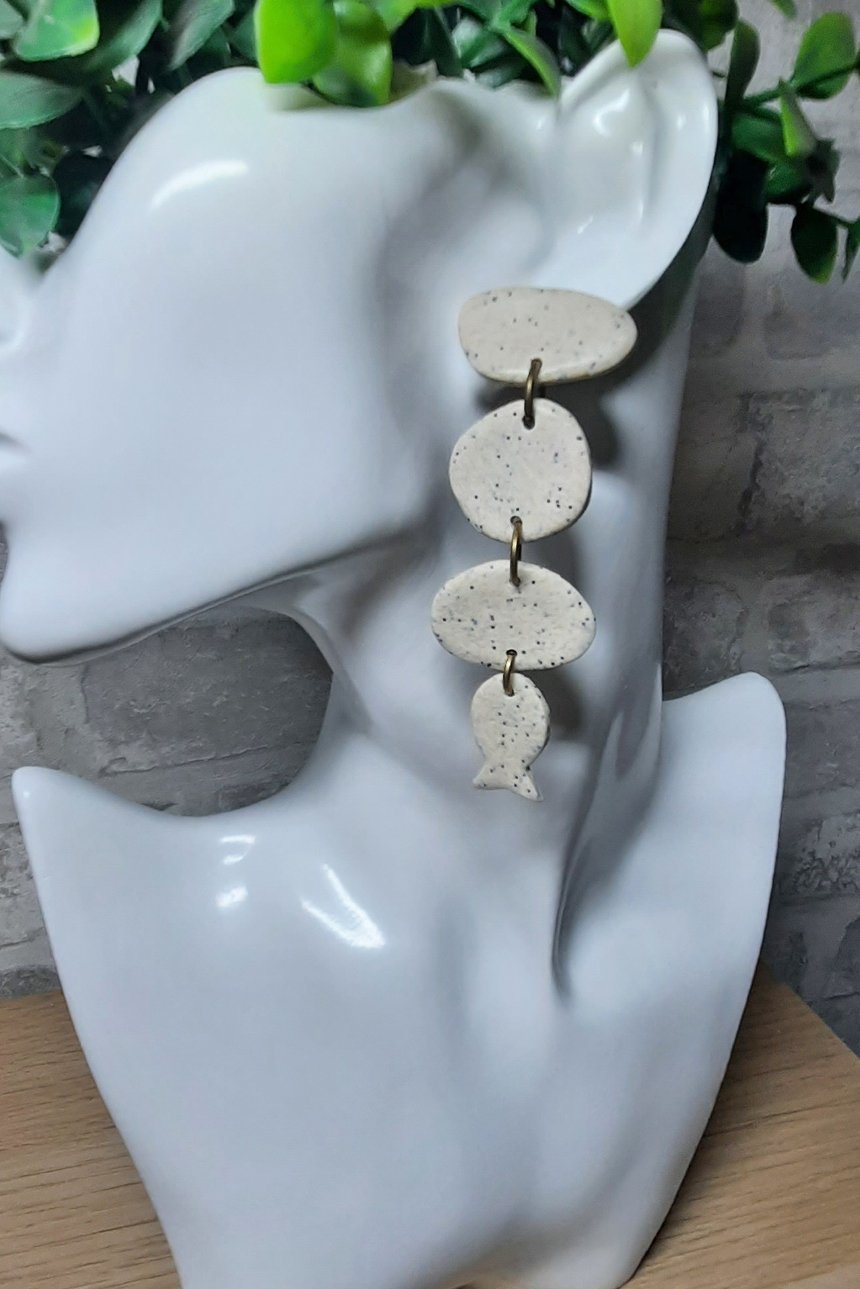 ■ Περιγραφή: Μπεζ ασύμμετρο μακρύ σκουλαρίκι με ψαράκι