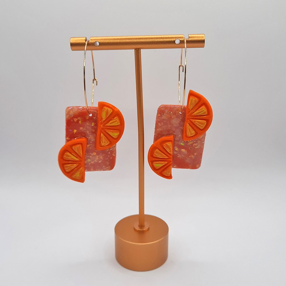 ■ Περιγραφή: Κρίκοι με πορτοκαλί ορθογώνιο καλυμμένο με υγρό γυαλί και λαχταριστές φέτες πορτοκαλιού! 🍊🧡