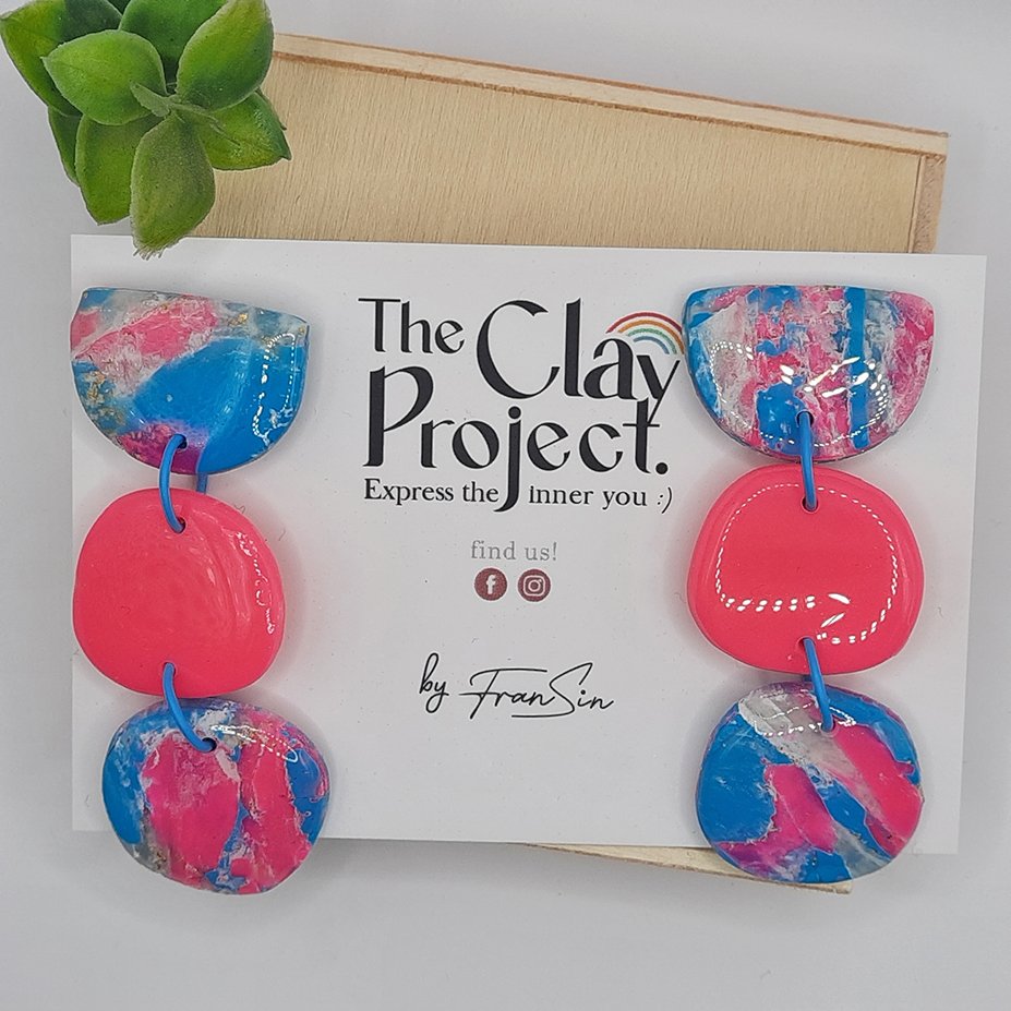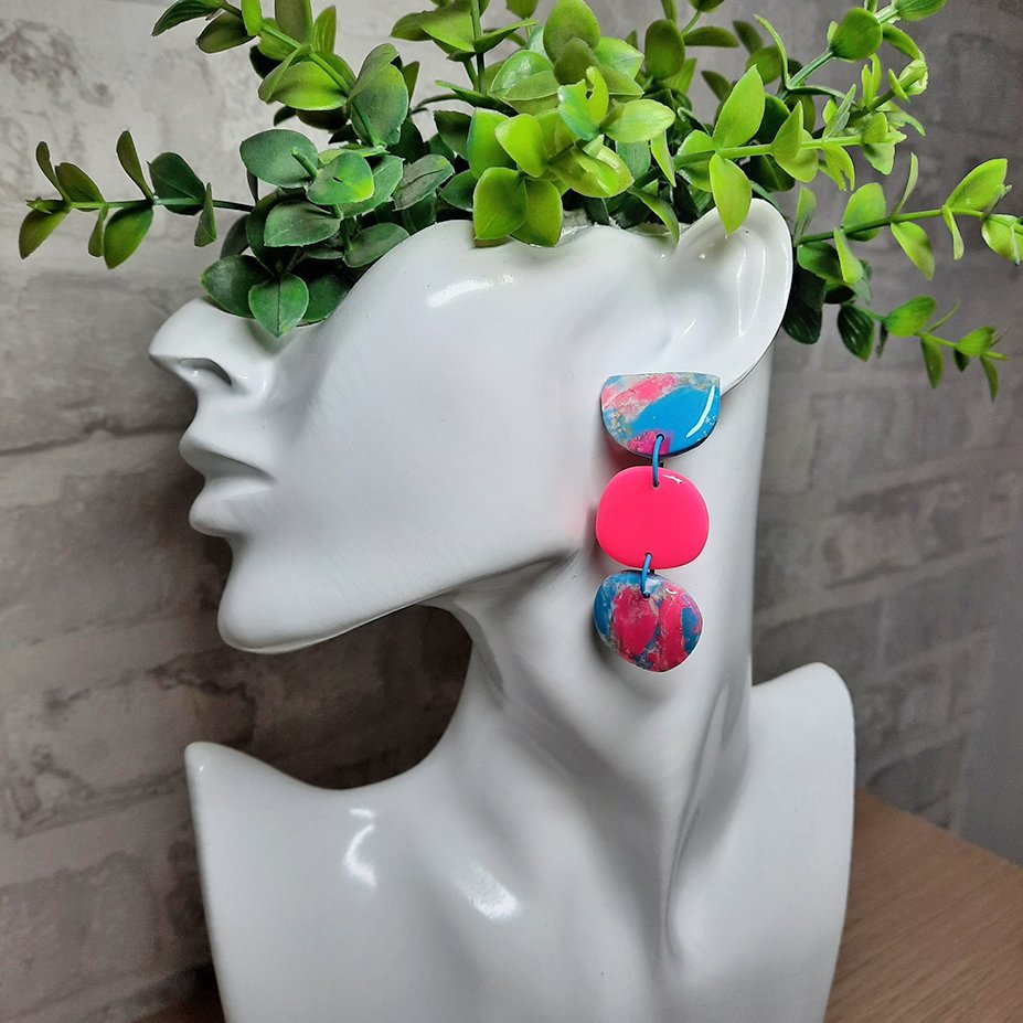 Περιγραφή: Τρίπτυχο σε μπλε και neon ροζ αποχρώσεις, ενωμένο με μπλε κρικάκια.
