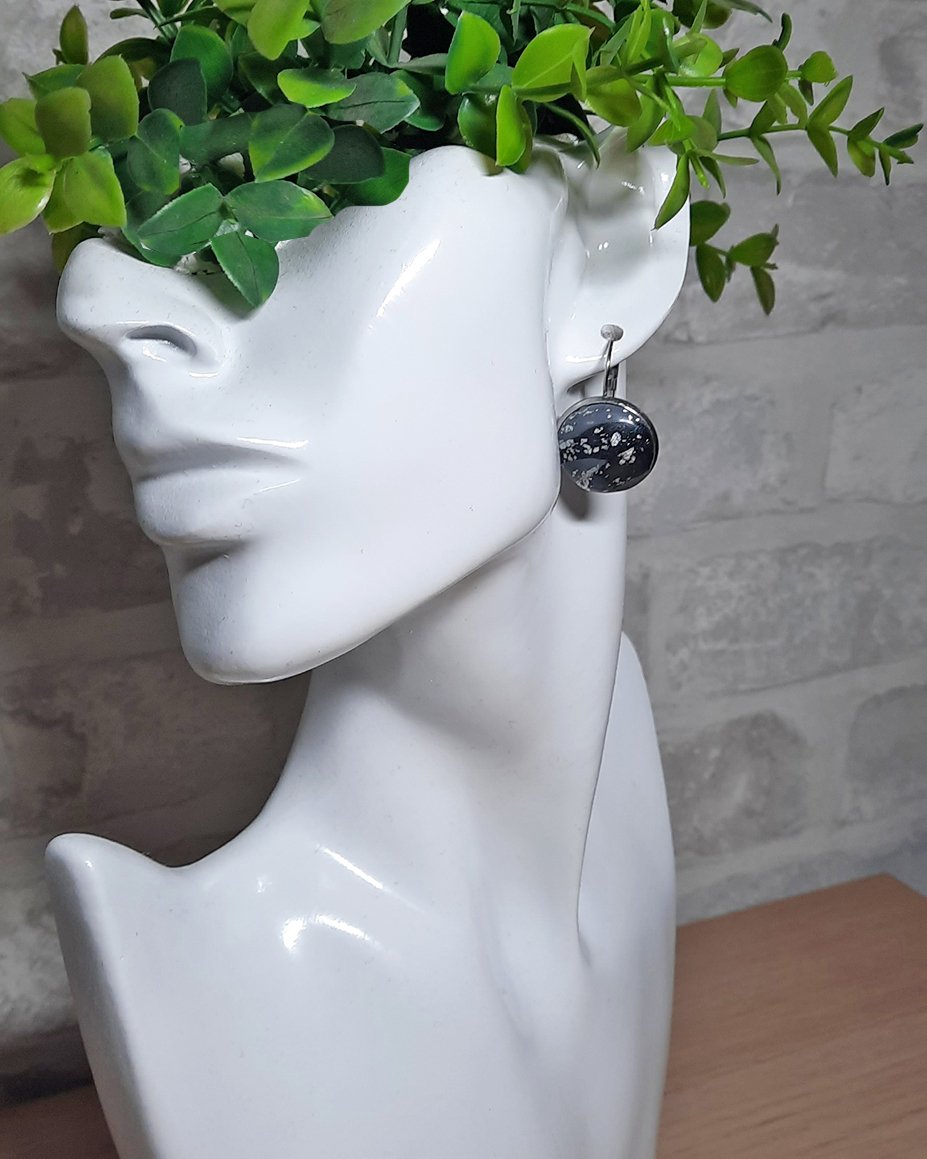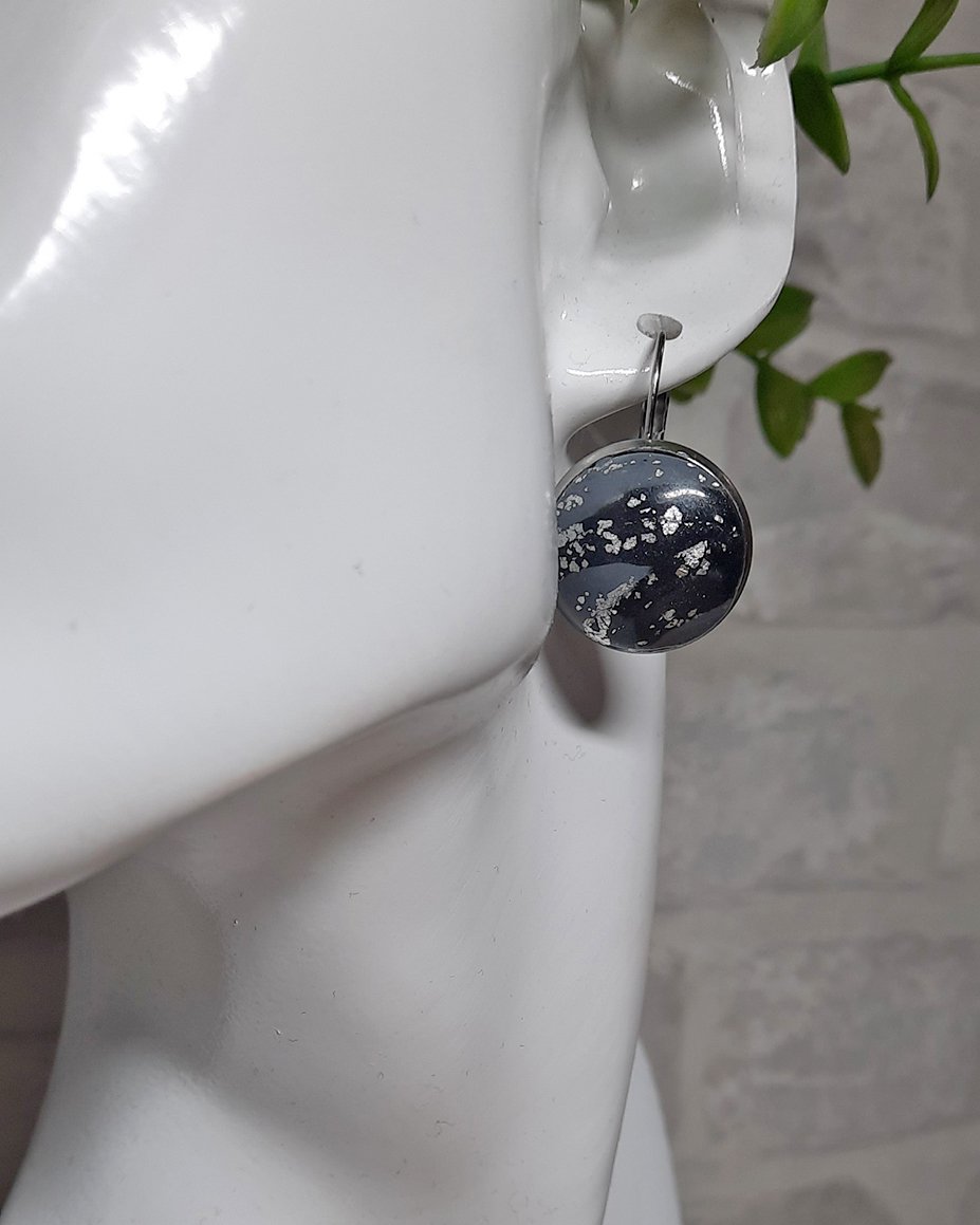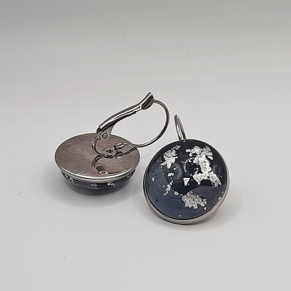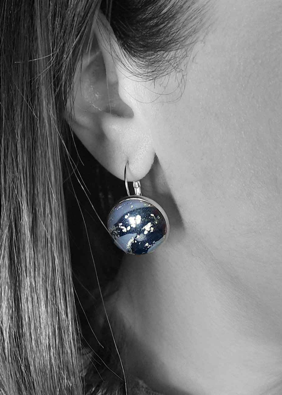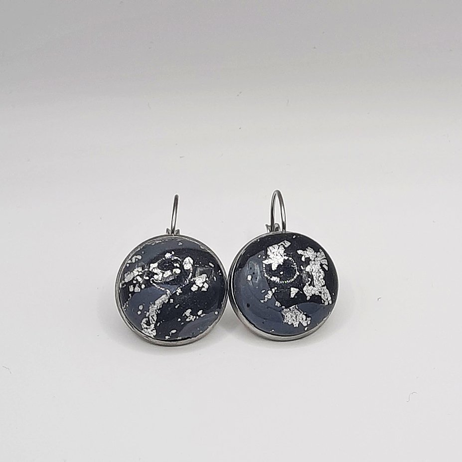 ■ Περιγραφή: Στρογγυλό σε σκούρες μπλε & μαύρες αποχρώσεις, με ασημί φύλλα χρυσού, καλυμμένο με υγρό γυαλί για έξτρα λάμψη!