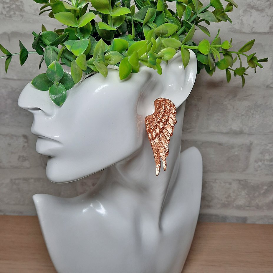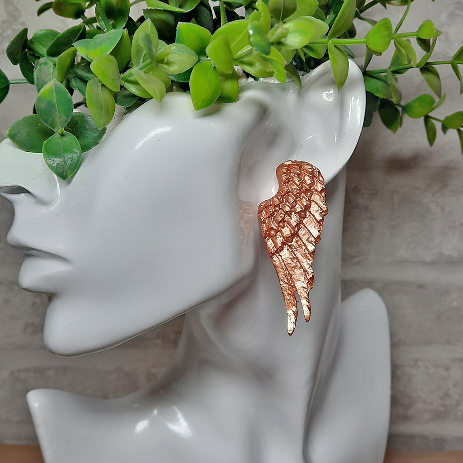 Περιγραφή: Καρφωτό σκουλαρίκι σε σχήμα φτερών αγγέλου. Η διάστασή του είναι 6 * 2,5 εκ. περίπου και το στέλεχος του σκουλαρικιού είναι από υποαλλεργικό ατσάλι.