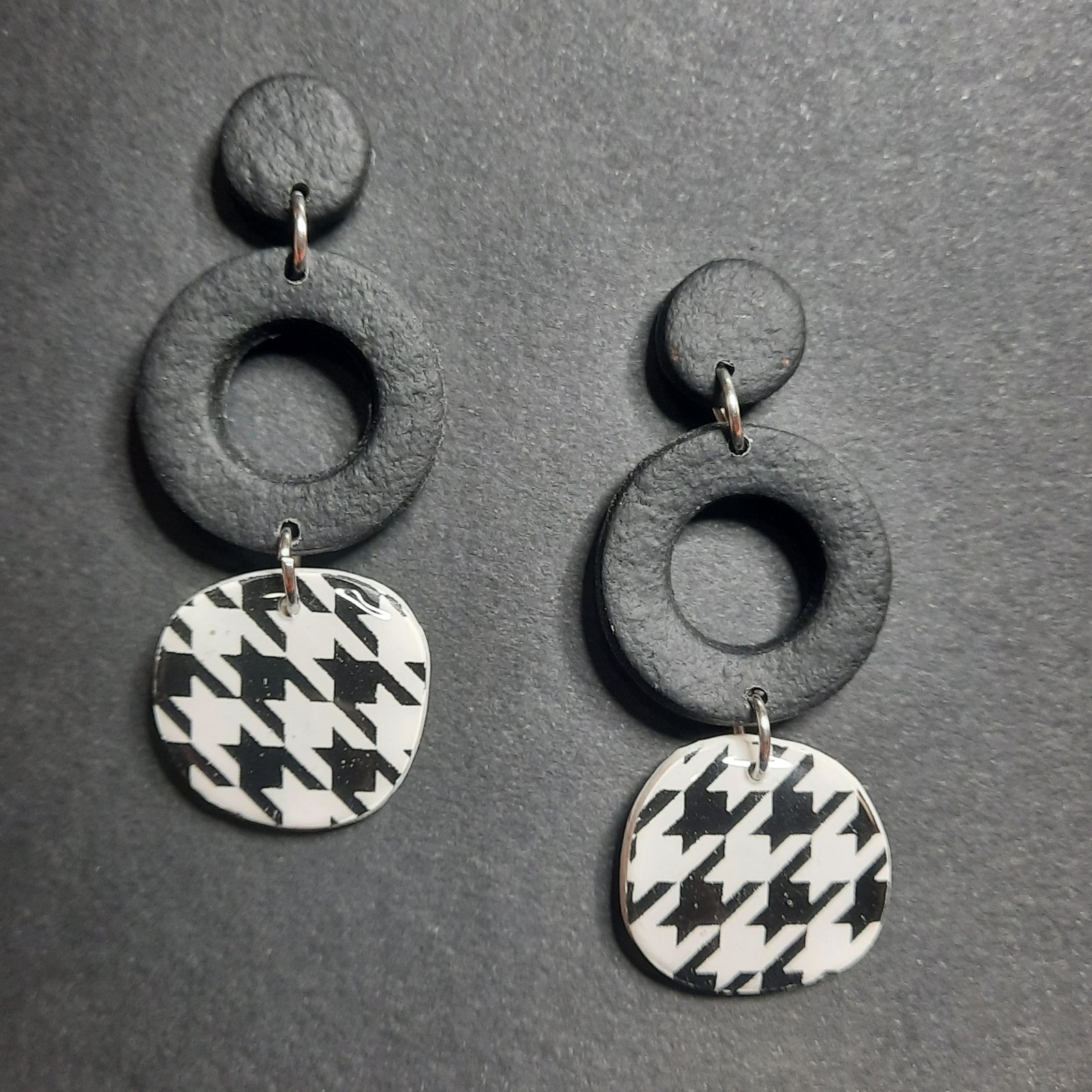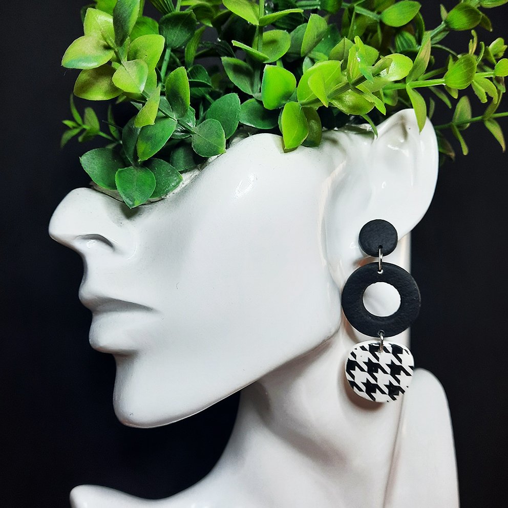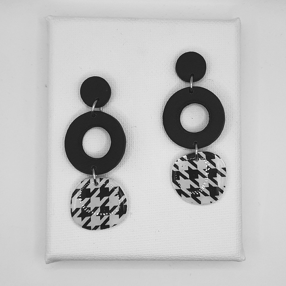 Περιγραφή: Pied de poule 🖤🤍 Μust μοτίβο, που φοριέται παντού και σε όλες τις περιστάσεις! Τα μαύρα μέρη είναι από πηλό με όψη δέρματος, ενώ το κάτω μέρος με το μοτίβο είναι καλυμμένο με υγρό γυαλί.
