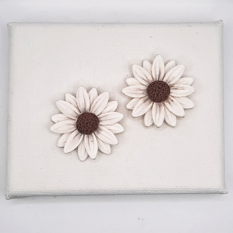 Περιγραφή: Καρφωτό σκουλαρίκι μαργαριτούλα σε λευκό και κίτρινο