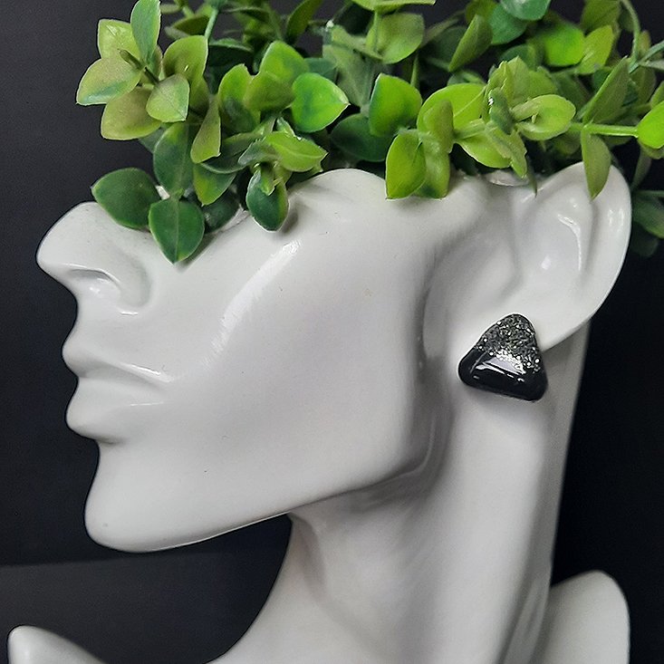 Περιγραφή: Τριγωνάκια με ασημόσκονη και ρητίνη.