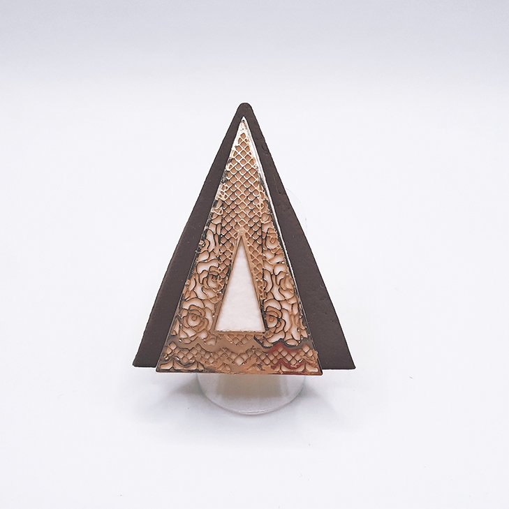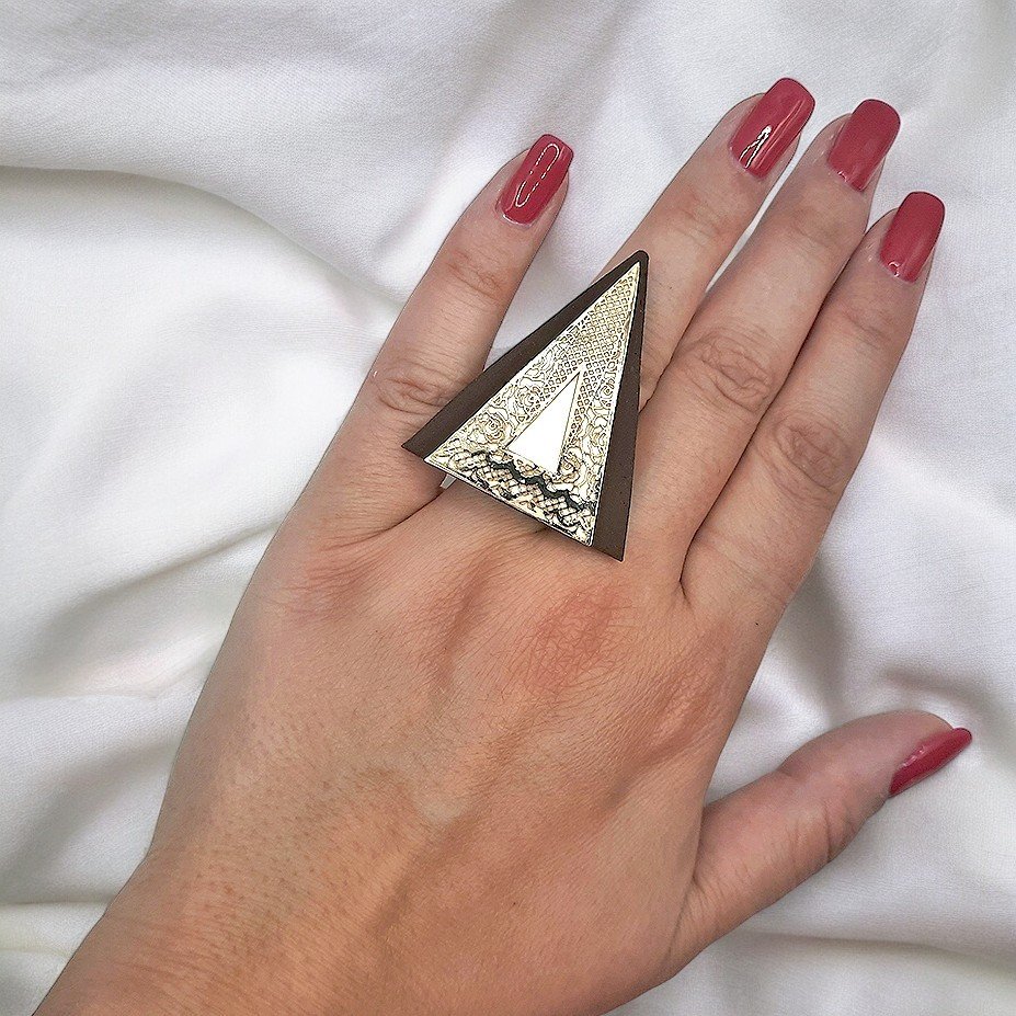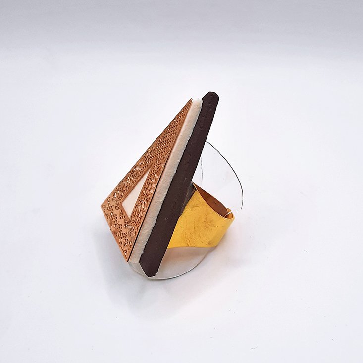 Περιγραφή: Τρίγωνο καφέ δαχτυλίδι με χρυσό μεταλλικό στοιχείο.