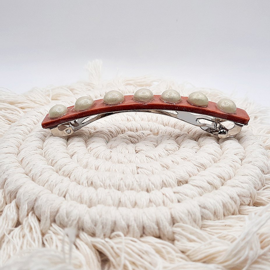 ■ Περιγραφή: Κοκαλάκι για τα μαλλιά σε ροζ χρώμα με “τύπου” πέρλες από πηλό.